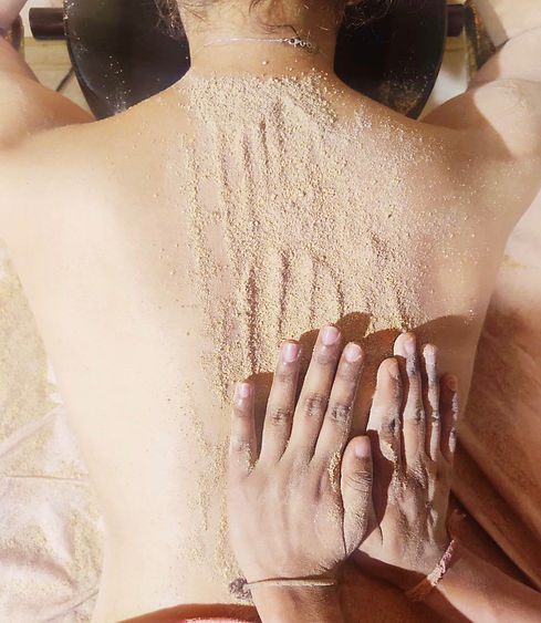 Udwartanam is a traditional Ayurvedic treatment using herbal powders applied with firm upward strokes. This dry massage helps improve metabolism, stimulates circulation and reduces heaviness - leaving the body feeling lighter, toned and refreshed.
